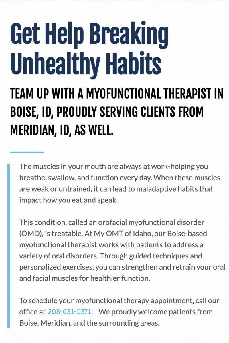 Call us today to get started on a long-term solution to your orofacial myofunctional disorder (OMD).